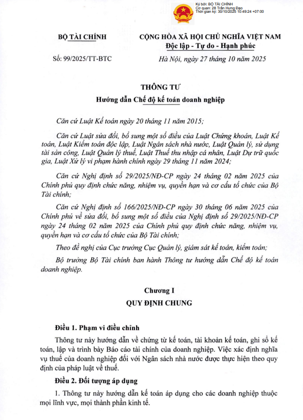 Ngày 27/10/2025, Bộ Tài chính đã chính thức ban hành Thông tư 99/2025/TT-BTC – văn bản thay thế Thông tư 200/2014/TT-BTC sau hơn 10 năm áp dụng.